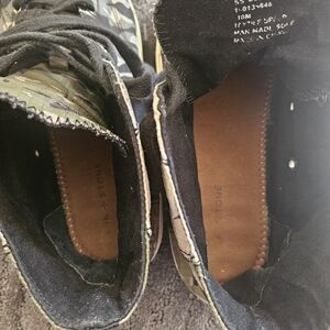 mens size 10 Sun + Stone high top camo sneakers. wear/damage on the soles as shown in pictures.