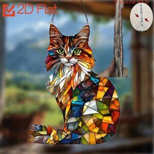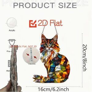 Fun and colorful, multi-colored cat... acrylic decorative window or wall hanging. Great for cat lovers. Approximately 8 inches tall x 6 inches wide.