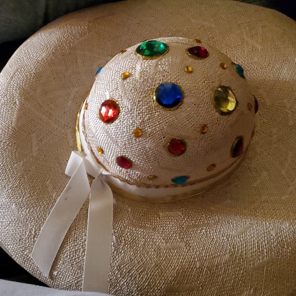 Beige sun hat, big and round to keep sun out of eyes. Can wear in the Summer or wear in keeping a garden up.
