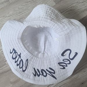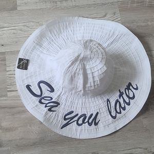 Sun hat white and nave blue..the hat is crushable so no worries if you have to put in luggage or fold and put in small bag it won't wrinkle or mess up