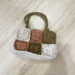 Sun ‘n’ Sand cream and tan crochet mini handbag with wooden handles #beachyvibes #festivalvibes #festivalwear #festival