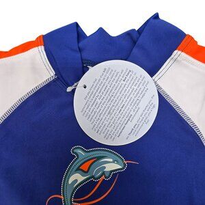 The SunBusters Boys' Rashguard Shirt offers excellent sun protection with its UPF 50+ rating. Designed for young children, this shirt combines comfort and durability, making it ideal for outdoor activities. Its vibrant color scheme and dolphin print add style, while the quality material ensures longevity for active play.