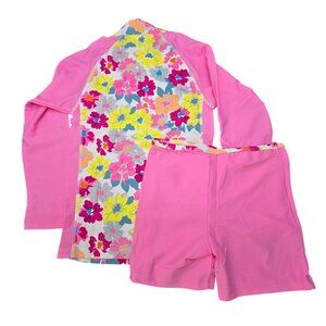 SunBusters Rash Guard Set 2-3Yrs UPF 50 Pink Floral Long Sleeve Short JJ4127