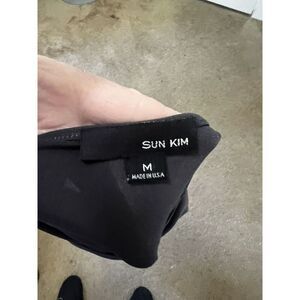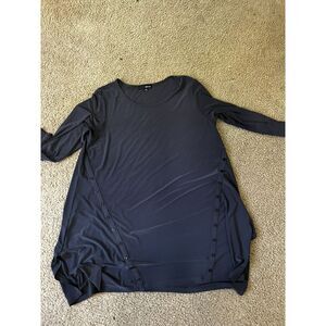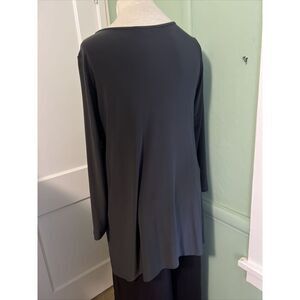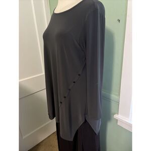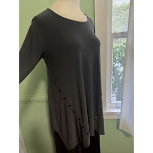 Sun Kim Womens Medium Lagenlook Gray Jersey Pullover Tunic Top Button Details