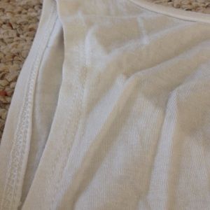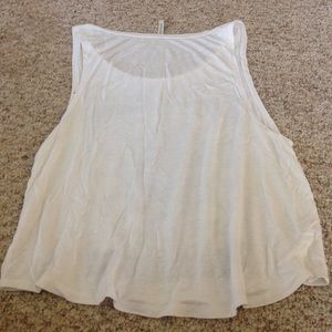 White "we live by the sun,we feel by the moon" tank top from Pink&Berry, size small/medium. Small brown stain on the back upper left shoulder.