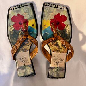 SunSations By Jade-Brazil-Leather Toe Sandals-Square Toe/Heel-Hibiscus-Sz. 11