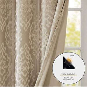 SunSmart Mirage Total Blackout Knitted Jacquard Damask Room Blackout Curtains