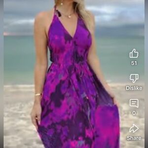 Sun+Soul Silk Blend Halter Tie Dye Dress One Size Flowy
