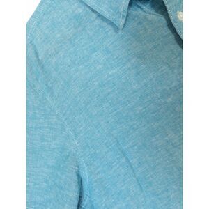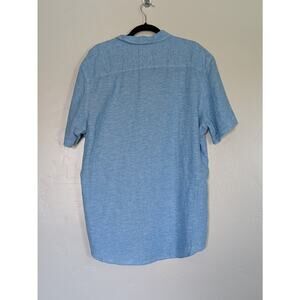 Sun+Stone Linen/Cotton Blend Blue Short Sleeve Button Down Shirt | Mens XL