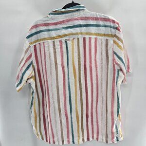Sun+Stone Men"s Cotton Linen Blend White Vertical Stripes Button Down Shirt XXL