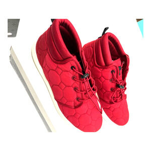 Sun+Stone Mens Fin Ankle Boots Red Fabric Lace Up Quilted Shoes 12 M NWT