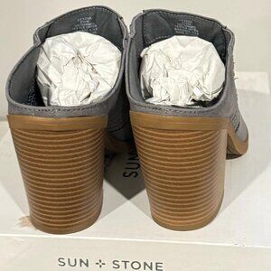 Sun+Stone Womens Deyzaa grey Metallic Pointed Toe Slip-On heels Mules Shoes 8.5