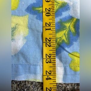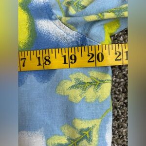 Sunbay Cotton vibrant vintage 55% linen 45% cotton women’s button up blouse. Fitted seams on back. Blue and neon green/yellow.