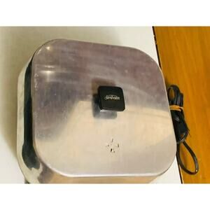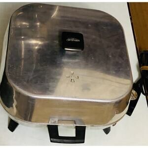 The Sunbeam Vintage Electric Skillet Frying Pan is a high dome, 1250 watt electric skillet in a beige color. Made of aluminum, this electric skillet by Sunbeam is a custom bundle that does not come with a manufacturer warranty. With its retro design and powerful 1250 watt energy source, this electric skillet is a unique and functional addition to any kitchen. Perfect for cooking a variety of dishes, this electric skillet is a vintage piece with a modern twist.