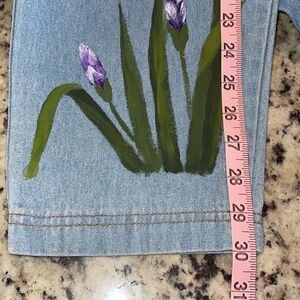 Sunbelt Denim Jeans Vintage Floral Hand painted Pull On Light Wash Mom Trend Med