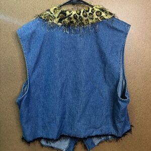 Sunbelt Denim Vest Leopard Faux Fur Collar Rhinestone Star XL