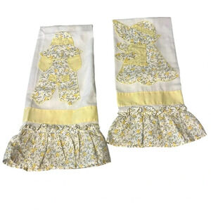 Sunbonnet Sue And Sam Handmade Hand Towels Yellow/white Ruffle Detail Set Of 2