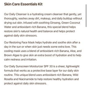 Sun Bum essentials skin care kit! Comes with 1oz cleanser 0.5 Oz sunscreen and 0.5 restoring face mask! Reusable bag!!