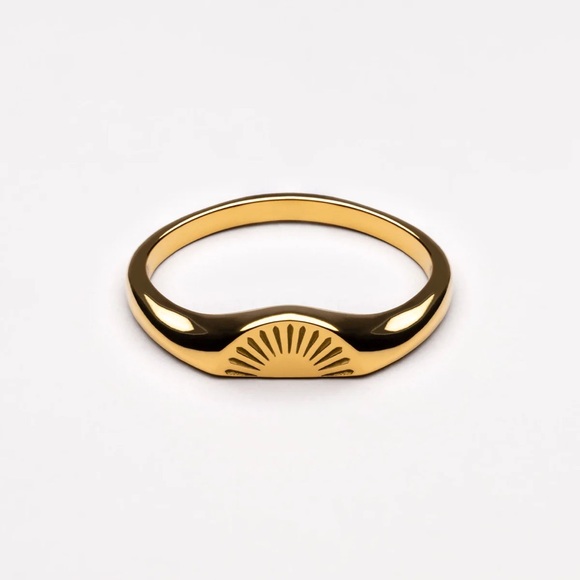 This stunning gold ring features a unique sunburst design, adding a touch of elegance to any outfit. Perfect for both casual and formal occasions.