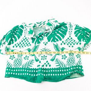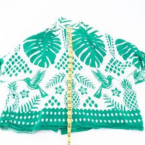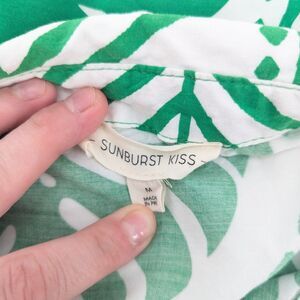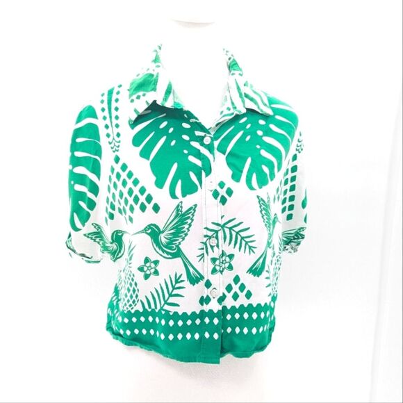 Sunburst Kiss White Green Tropical Button Up Short Sleeve Cropped T-Shirt Size M
