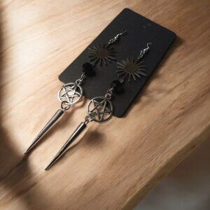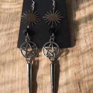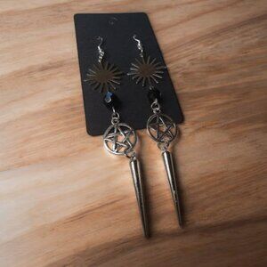 Sunburst and Pentacle Spiked Earrings