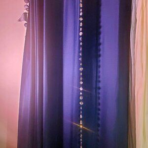 These pieces are handmade and strung using monofilament and a variety acrylic beads and gemstones of different sizes. Every strand made is different. While there is a small loop at the top for you to hang a variety of different ways, I've added a metal curtain hook so you can hang it straight away.