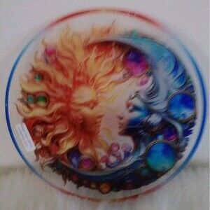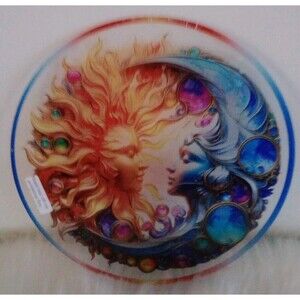 Beautiful sun & moon acrylic suncatcher hanging, round 8" X 8". Very colorful. A cord is included for hanging. New in package.