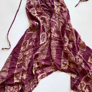 Sunchild Classic Silk Dress One Size Purple Batik Print Boho Halter Maxi Dress