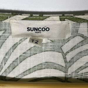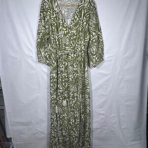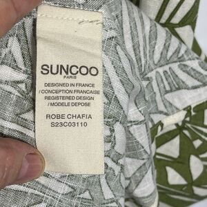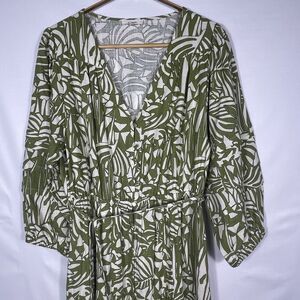 Suncoo Olive Green Cream Linen Mix Chafia Leaf Print Midi Dress Size Medium NWOT