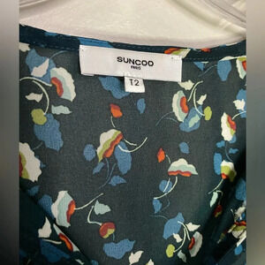 Suncoo Paris Lucille tunic top blouse navy blue floral size T2 or medium