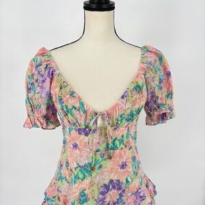 Sundae Muse Romper Dress Size 10 Floral Print Puff Sleeve Cottage Core