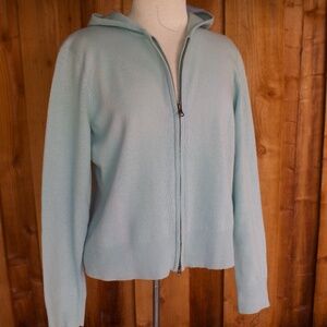 Sundance 100% Lambswool Knitted Sky Blue Peace Zip Up Hoodie Size L