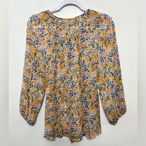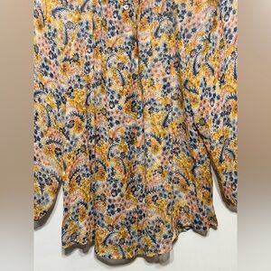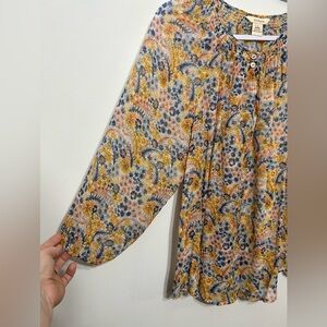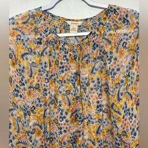 Sundance 100% Silk Button Up Blouse Floral Peasant Cottagecore Semi Sheer