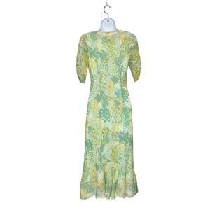 Sundance 100% Silk Floral Maxi Dress Women's 2P Yellow Green Cottagecore Ruched