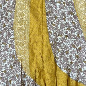 Sundance 100% Silk Skirt Size Large Boho Patchwork Midi Skirt Yellow Paisley