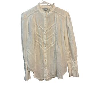 Sundance 100% cotton Louisa lace and ruffle Victorian button-down blouse size PM