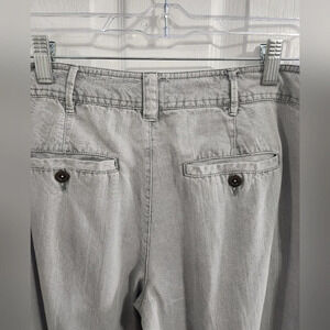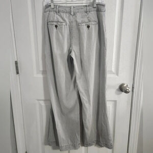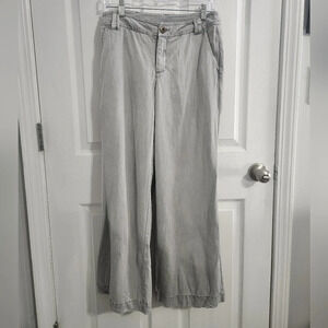 Embrace boho chic with these Sundance wide-leg pants. The relaxed fit and high-rise waist provide comfort, while the solid pattern and gray color make them versatile for any occasion. The pants feature a zip closure, pockets, and a flat front with button accents.