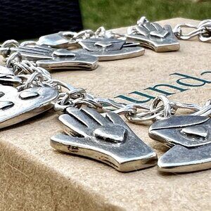 Sundance $538 NEW 7.5” Heart Hand Hat Silver Double Link Charm Handmade Bracelet