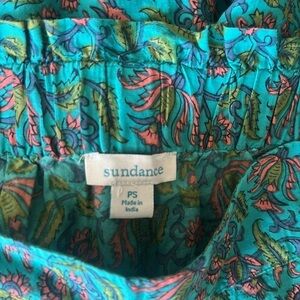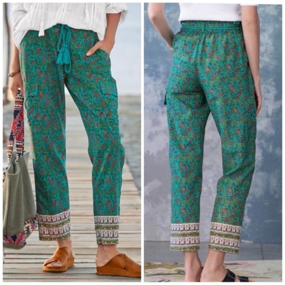 Sundance Paisley, floral green printed pants perfect for any occasion. Comfortable and chic design. With elastic waist and cargo style pockets size PS (petite small)