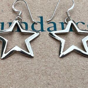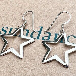 Sundance description: "Wish upon a winter star as you gaze into the deep blue night. Our sterling silver cut-out earrings gleam brightly to guide your way through all the seasons. Sterling silver French wires.1-1-1/4"L."