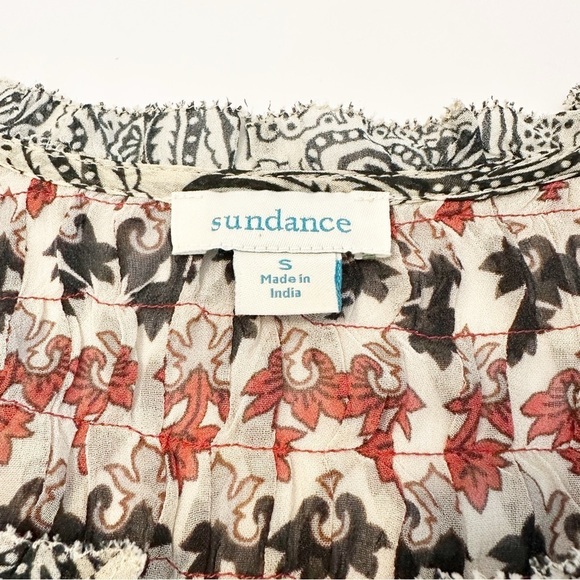 Sundance Adeliah Smocked Paisley Tassel Tie Top - Small