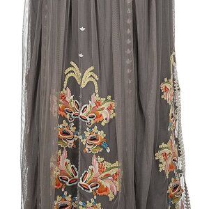 Sundance Adorabella Boho Folk Embroidered Mesh Tulle Maxi Skirt
