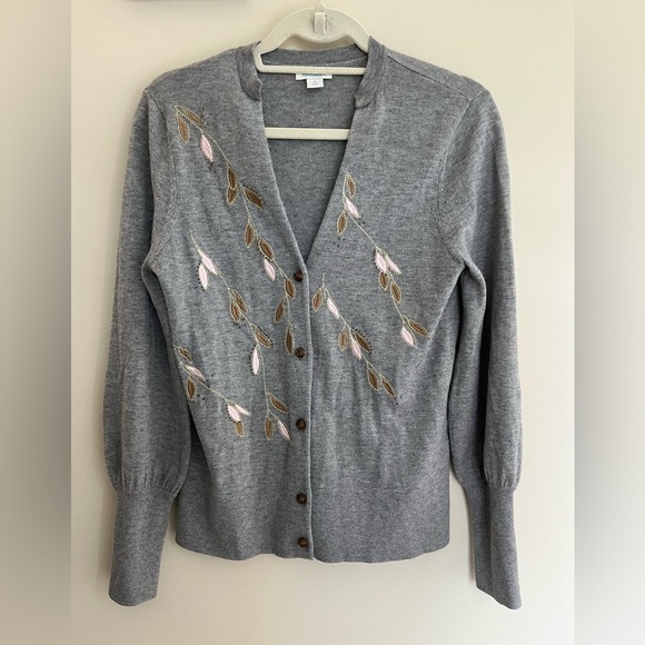Sundance Afterlight Embroidered Cardigan Sweater Gray Merino Wool Size M