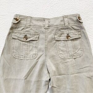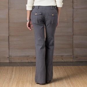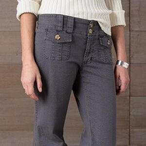 Silky-smooth, drapey, straight leg pants with button-closure patch pockets on front and back. 100% tencel. Grey coloration.