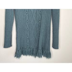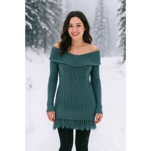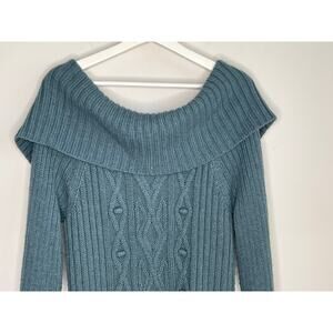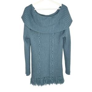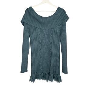 Sundance Off Shoulder Fringe Hem Pullover Knit Sweater Teal Women's Size Large