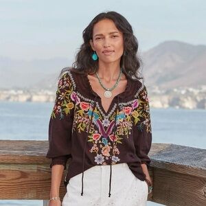 Sundance Amora Blooms Bird Floral Embroidered Boho Top