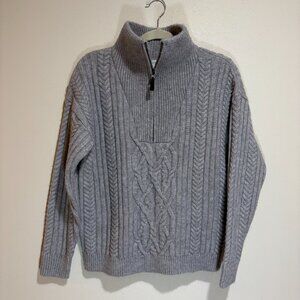 Sundance Angelique Mock Neck Quarter Zip Cable Knit Pullover Sweater Gray