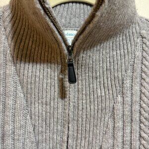 Sundance Angelique Mock Neck Quarter Zip Cable Knit Sweater. Marled gray neutral color. Long sleeve. Half zipper front pullover. Mockneck turtleneck collar.