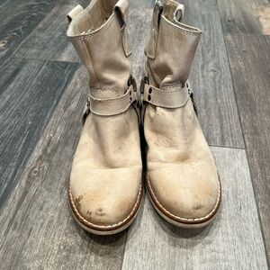 Sundance Ankle Harness Bootie Moto Nude Neutral Leather Italy Sz 37 / 6