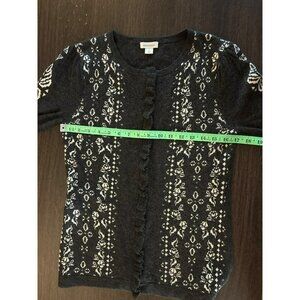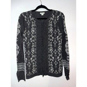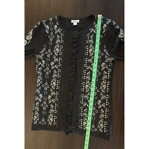 Sundance Anya Ruffled Wool Blend Full-Zip Gray/White Cardigan Sweater Size S
